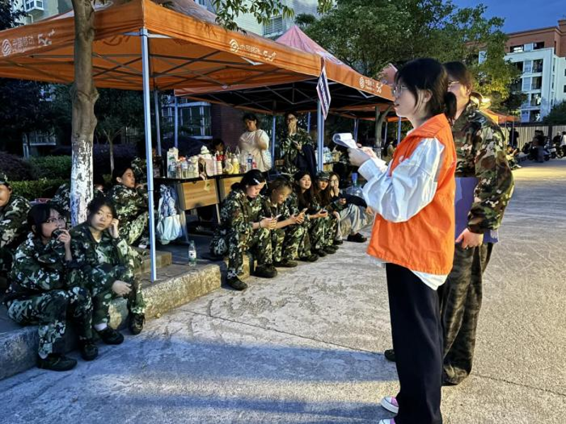 训练场上,志愿者们的身影与新生的迷彩服交相辉映,成为秋日校园里动人的风景。他们主动关注新生训练状态,及时递上解渴的饮用水,用清凉驱散秋日燥热与训练疲惫;遇到体力不支、轻微擦伤等突发状况,志愿者们反应迅速,第一时间协助处理,全力保障军训有序推进,让新生能以饱满热忱与乐观心态投入训练。