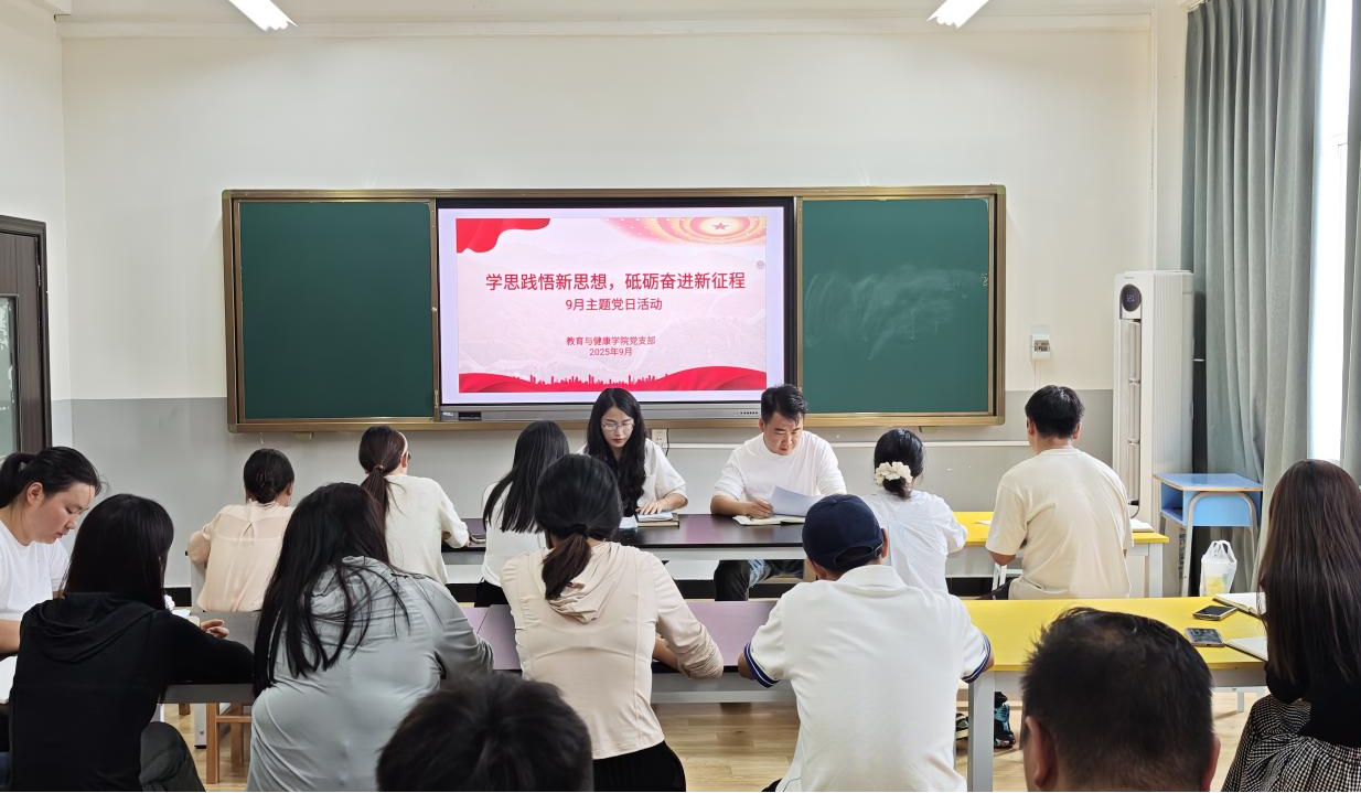 9月29日下午,教育与健康学院党支部在同德楼3楼会议室开展了“ 学思践悟新思想,砥砺奋进新征程”9月主题党日活动,支部全体党员参加,会议由党支部书记杨刊同志主持。